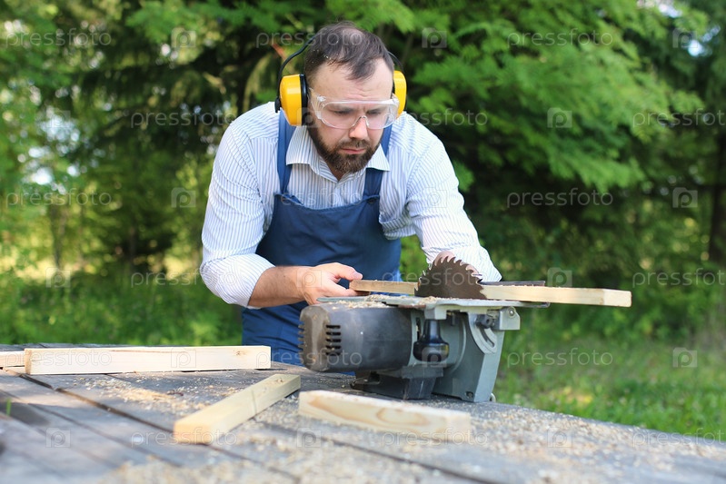 Работник с циркулярной пилой