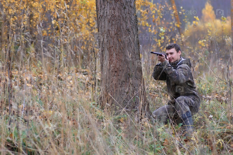 Охотник на открытом воздухе осенью