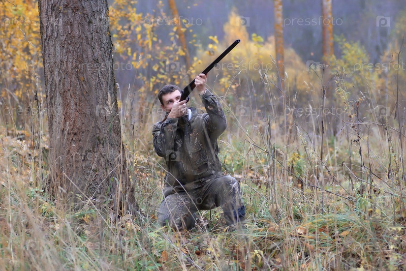 Охотник на открытом воздухе осенью