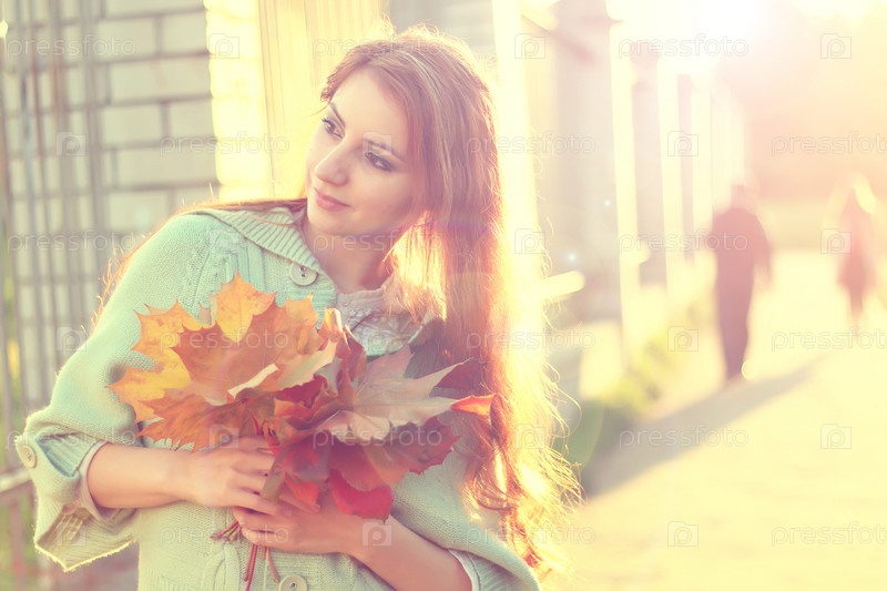 Рыжеволосая девушка осенью