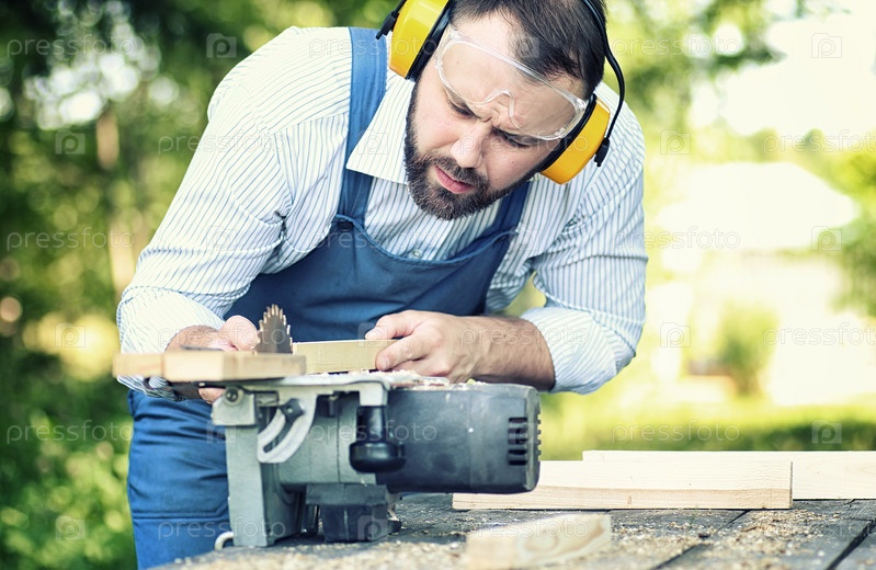 Работник с циркулярной пилой
