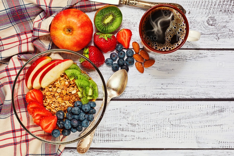 Здоровый завтрак мюсли с кофе