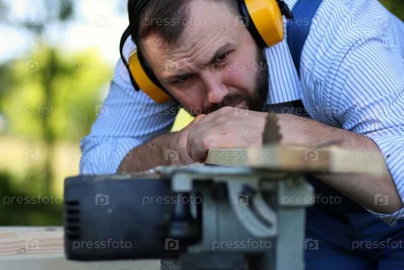 Мужчина работает с циркулярной пилой