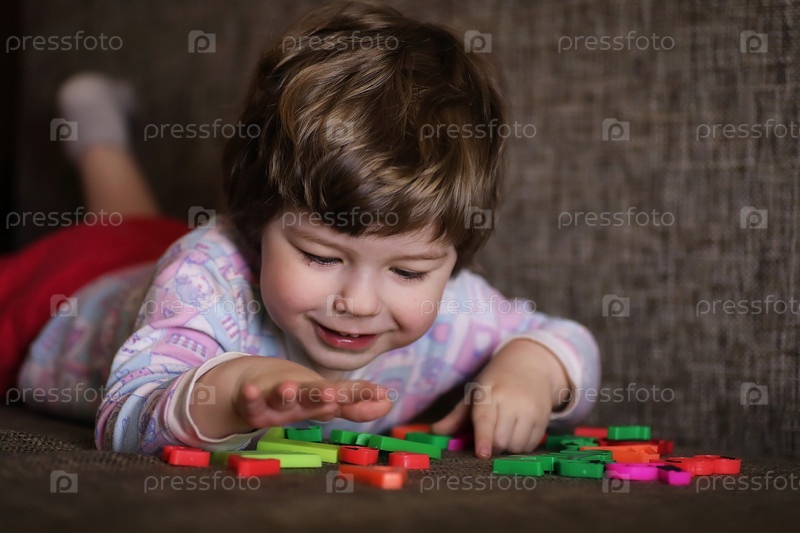 Ребенок, играя с маленькими игрушками