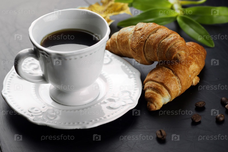 Утренняя чашка кофе и круассан