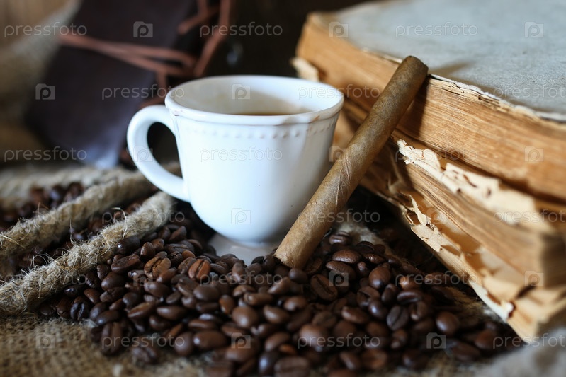 Кофе в зернах и сигара