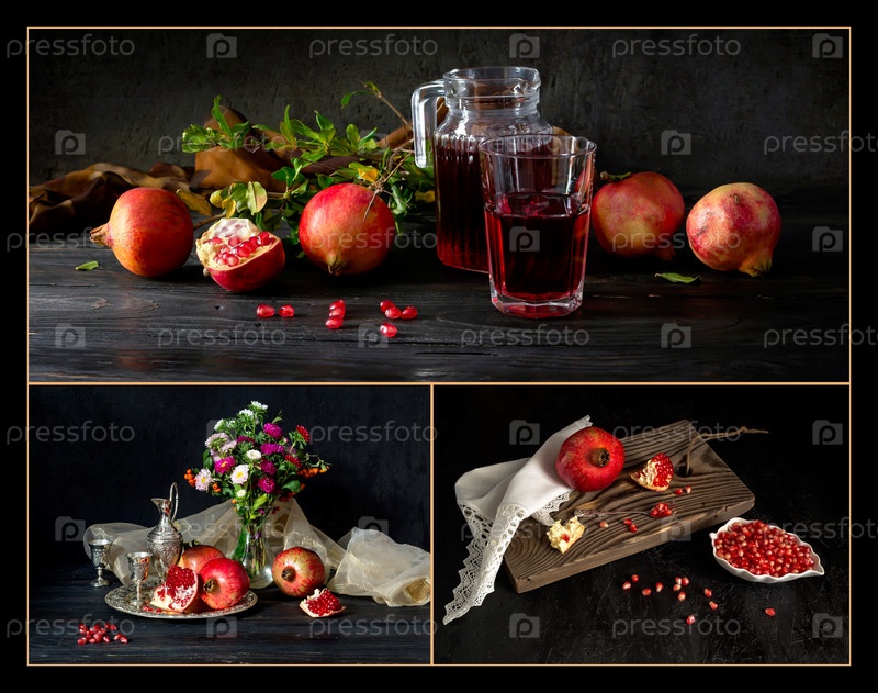Коллаж с цветами и гранатами