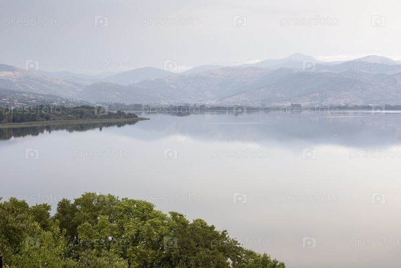 Панорама горного озера Вегоритида, Македония, северо-запад Греции