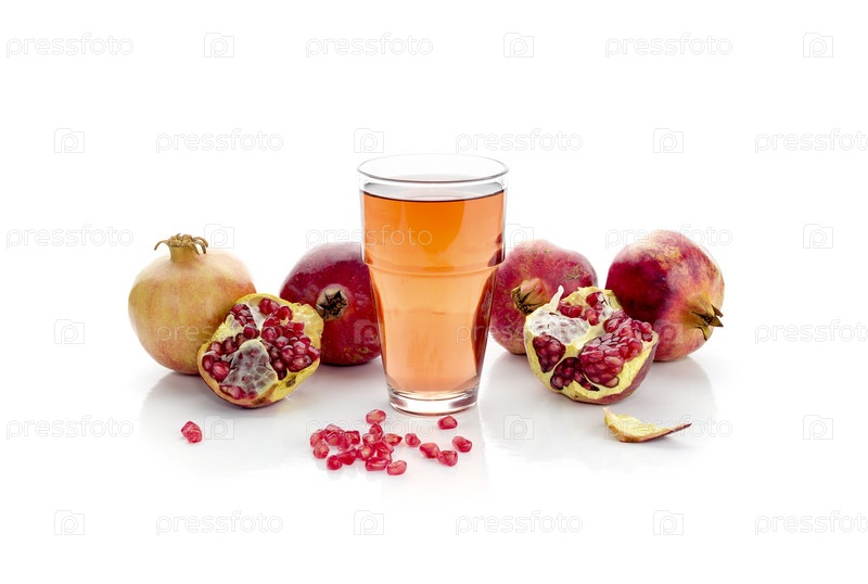 Красные гранаты и сок в стакане