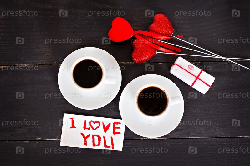 Две чашки кофе эспрессо и сердца