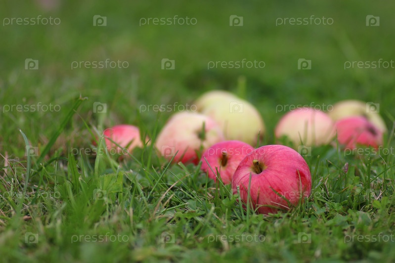 Урожай яблок на траве