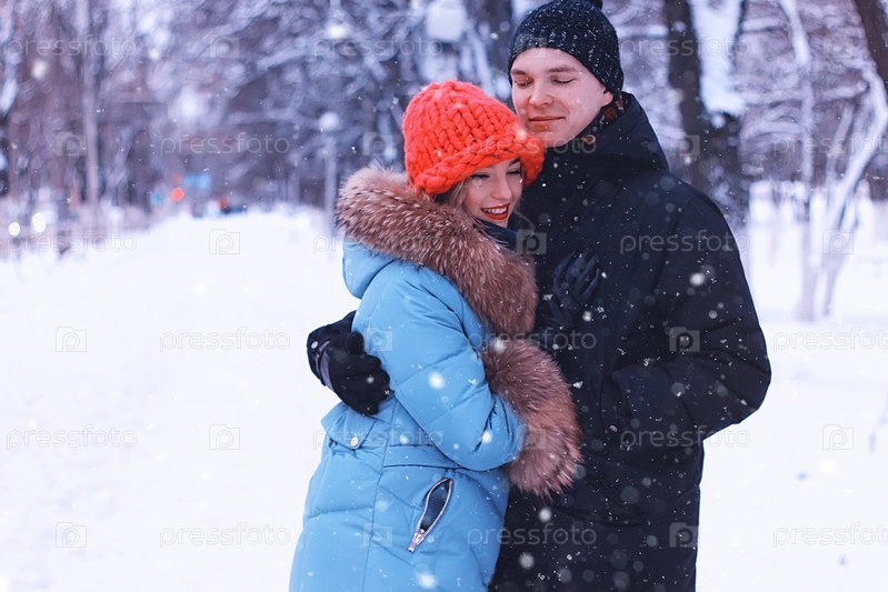 Молодая пара в зимнем парке