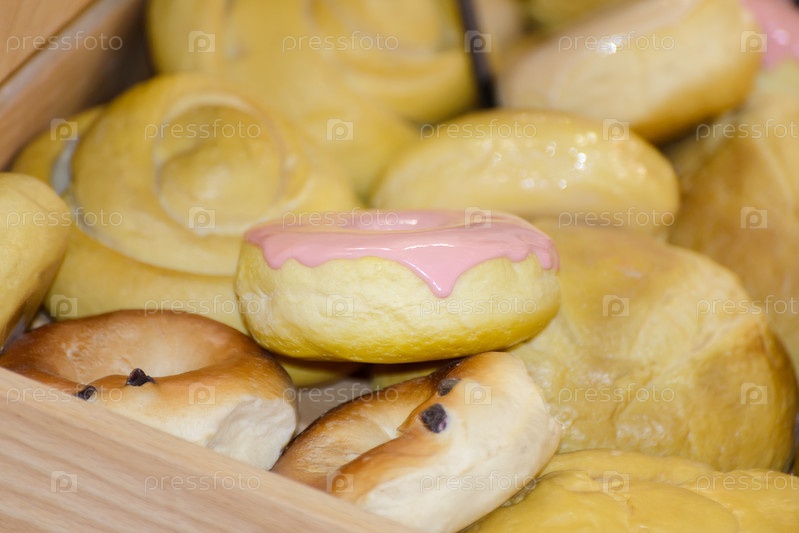 Сладкие булочки и пончики с розовой глазурью