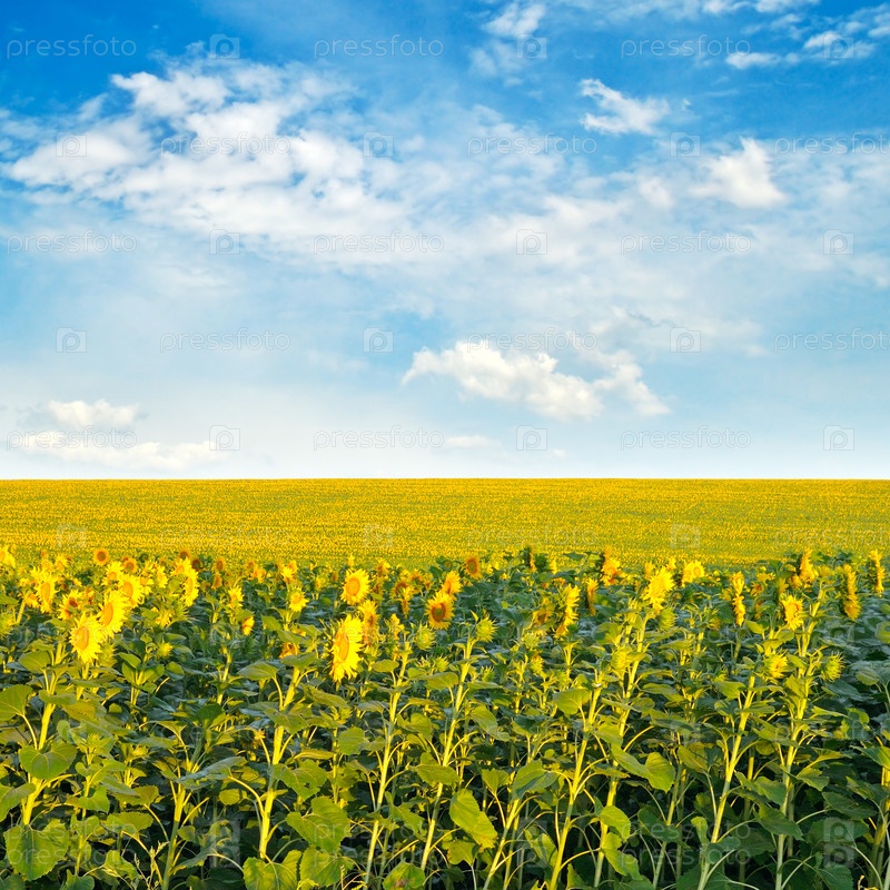 Поле с подсолнухами и облачным небом