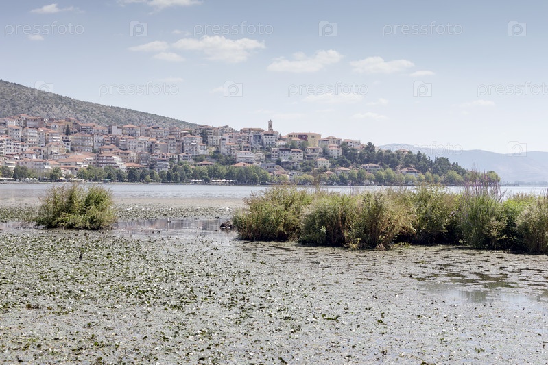 Горное озеро Орестиада и город Касторья, Македония, Греция
