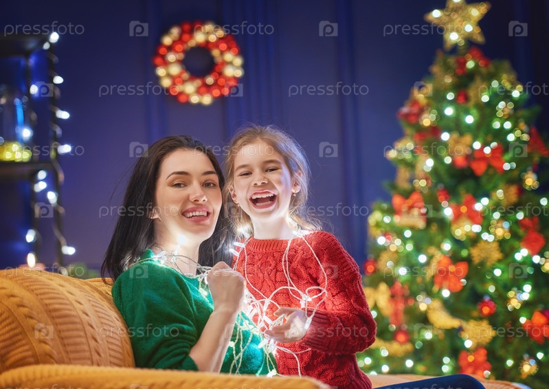Мама и дочь возле елки