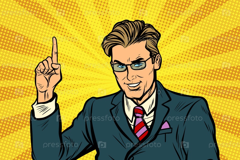 Бизнесмен указывая пальцем вверх
