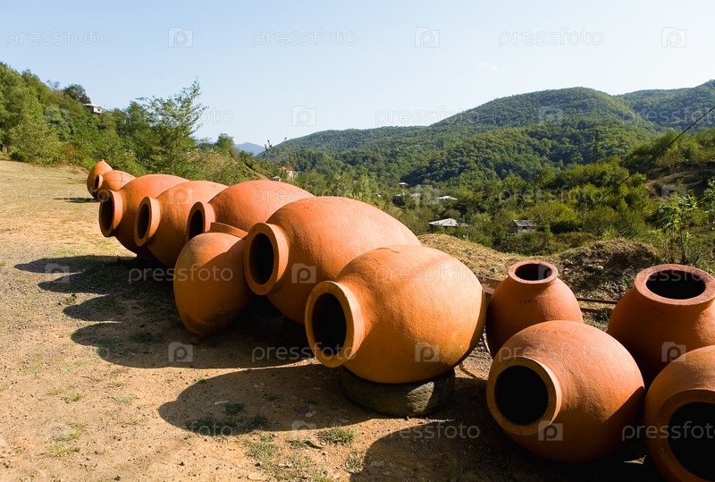 Большие глиняные кувшины для вина выставлены на продажу