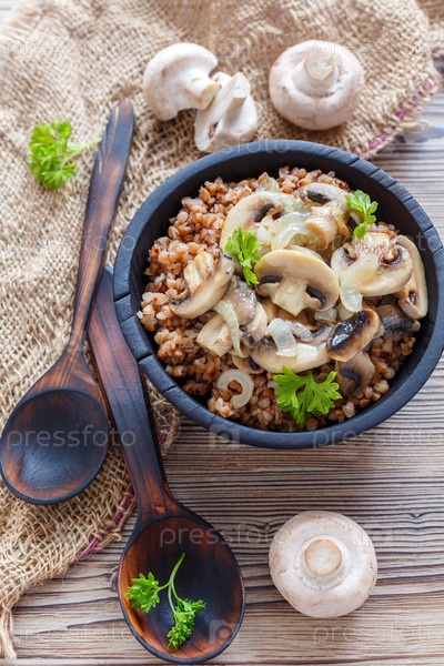 Традиционная русская кухня: гречневая каша с грибами и луком