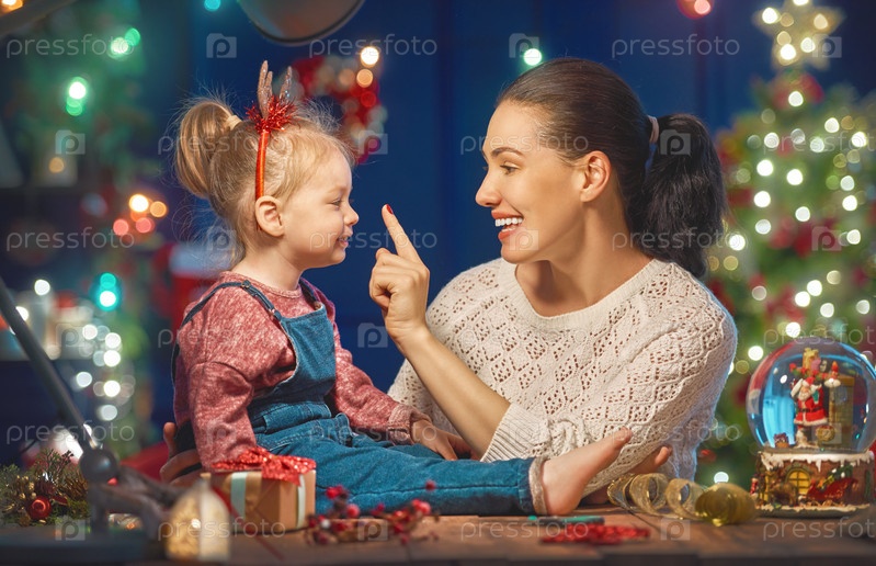 Мама и дочь возле елки