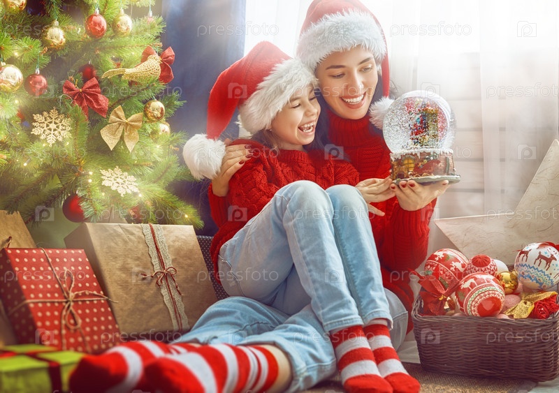 Мама и дочь возле елки