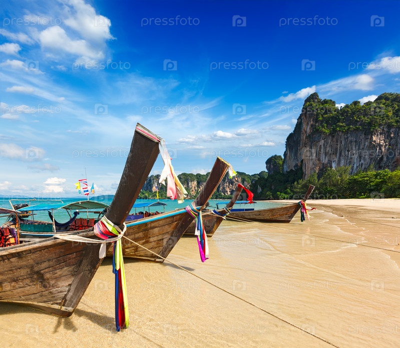 Лодки на тропическом пляже Рейлей в Таиланде