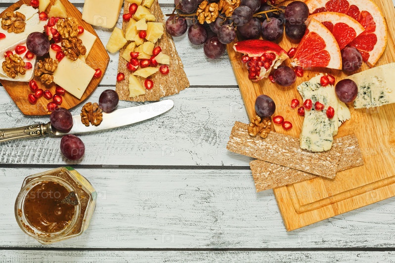 Изобилия сортов сыра с фруктами
