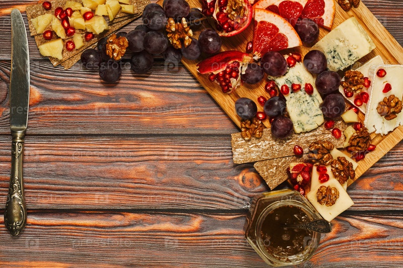 Изобилия сортов сыра с фруктами