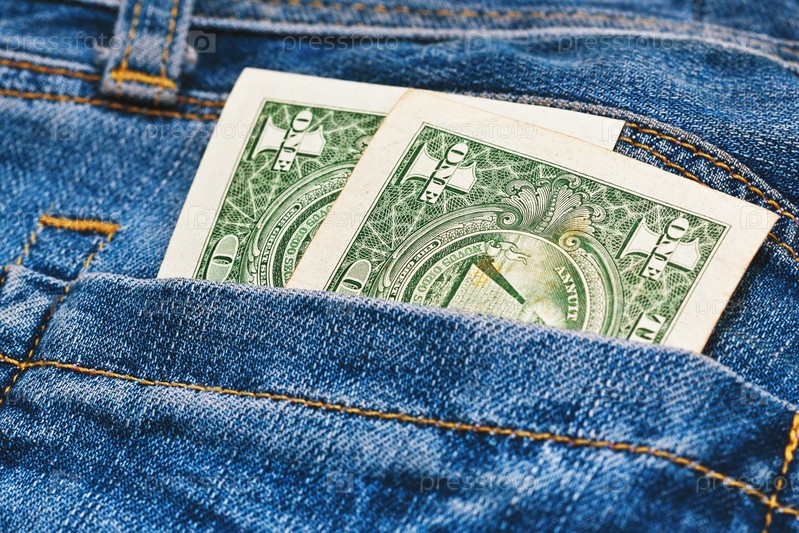 Банкноты доллары в кармане джинсов