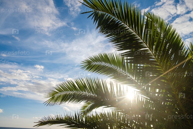 Пальмовые листья на фоне заката