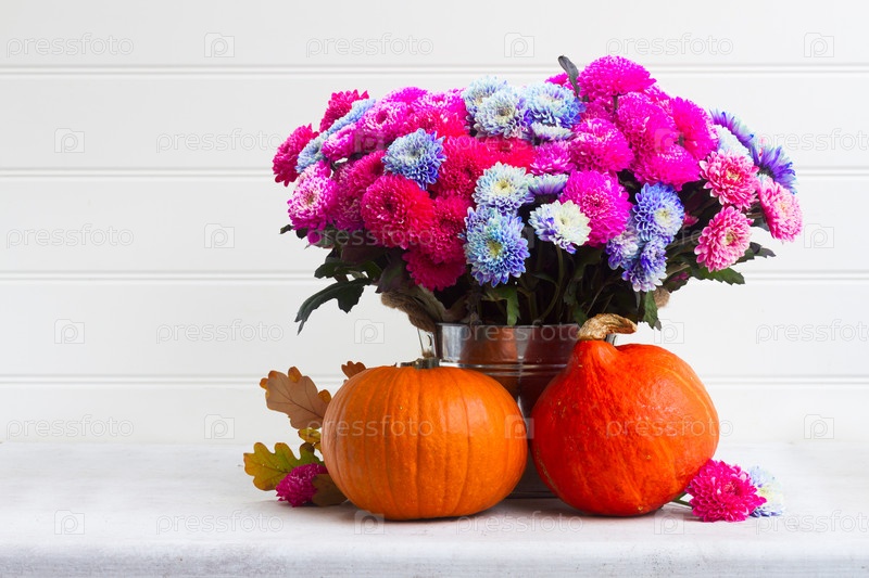 Цветы хризантемы и тыквы