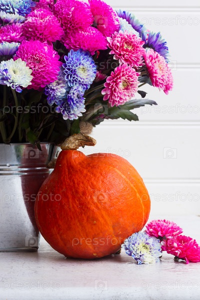 Цветы хризантемы и тыквы