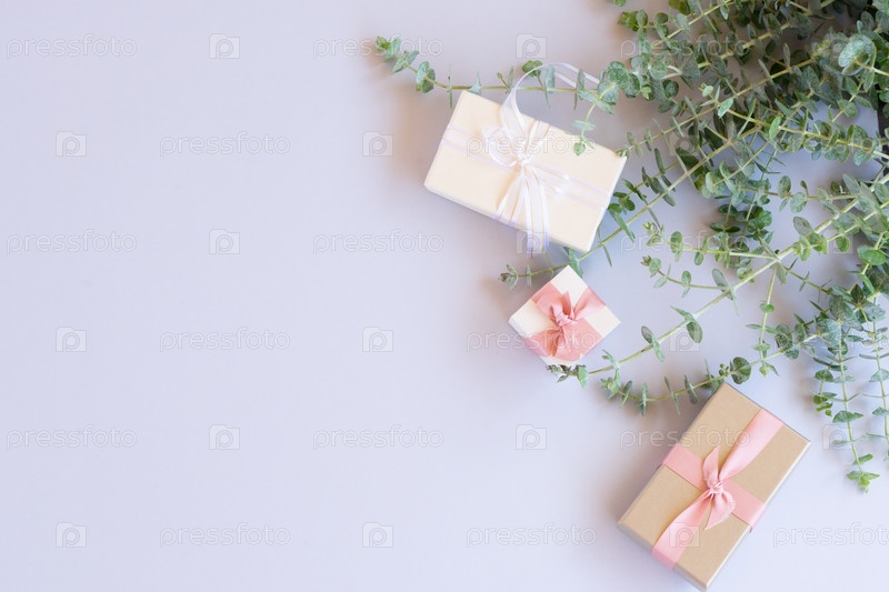 Подарочные коробки с зелеными листьями