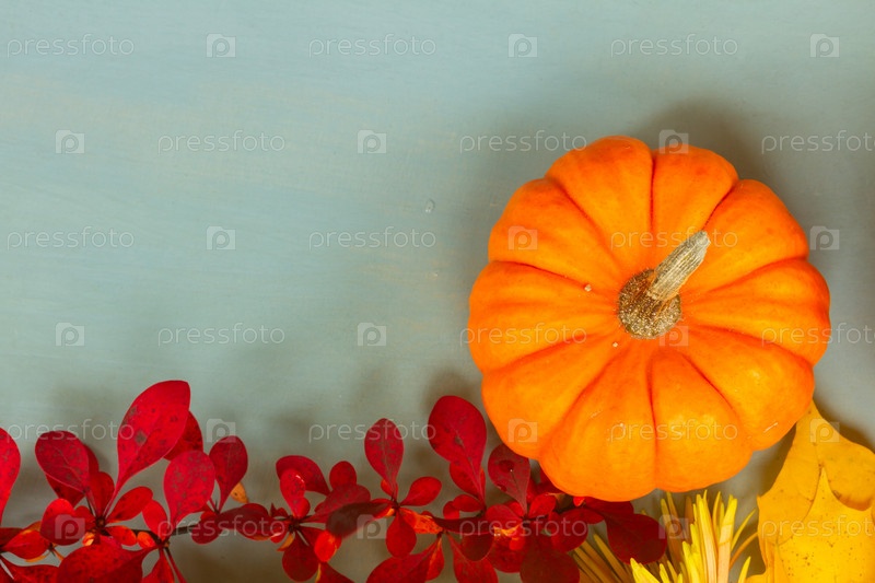 Тыквы на синем столе