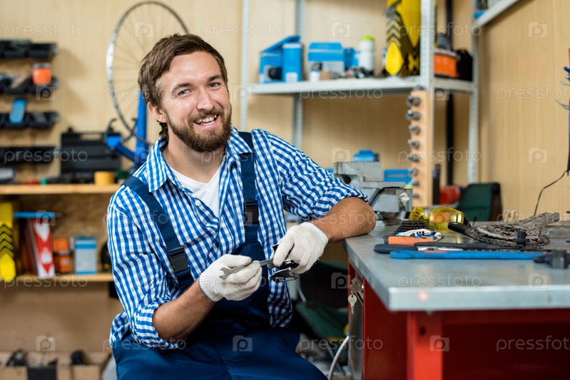 Красивый механик на работе