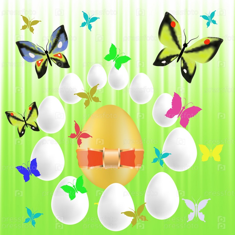 Пасхальные яйца и красочные бабочки