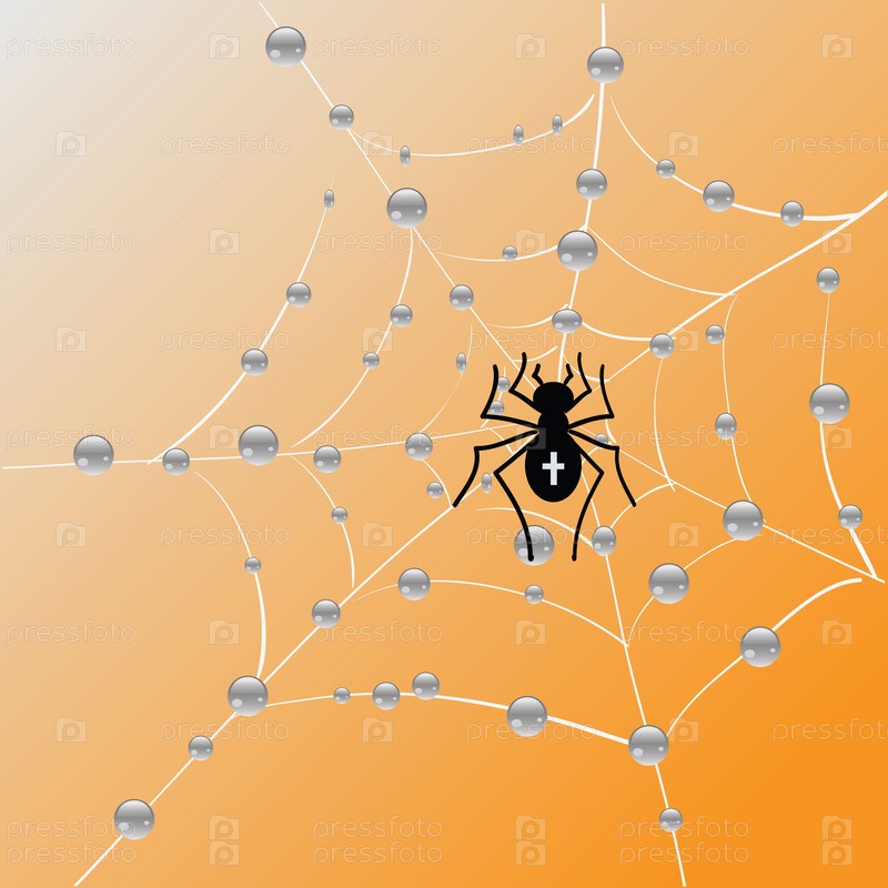 Паук и паутина с каплями воды
