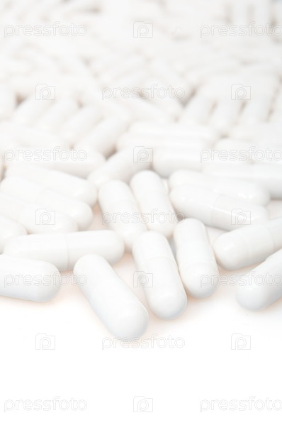 Медицинские белые капсулы на белом фоне