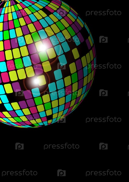 Светящийся дискотечный шар на черном фоне