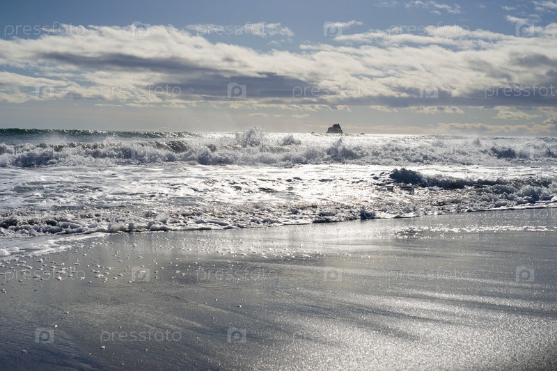 Волны Тихого океана разбиваются о берег Камчатки