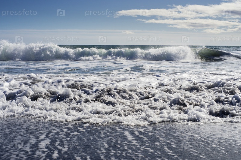 Маленькие волны Тихого океана разбиваются о берег