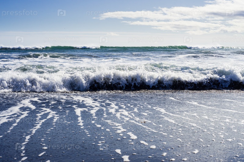 Волны Тихого океана разбиваются о берег Камчатки