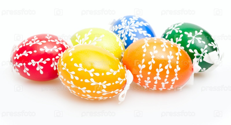 Пасхальные яйца на белом фоне