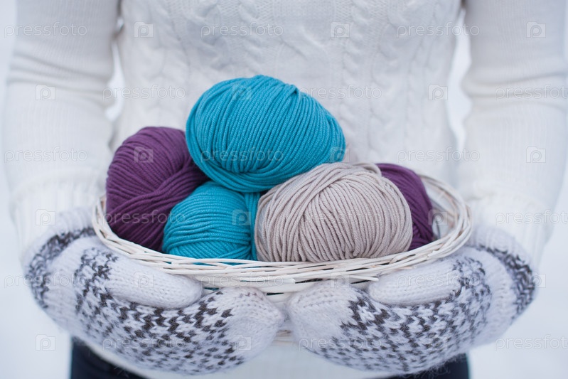 Пряжа в белой корзине