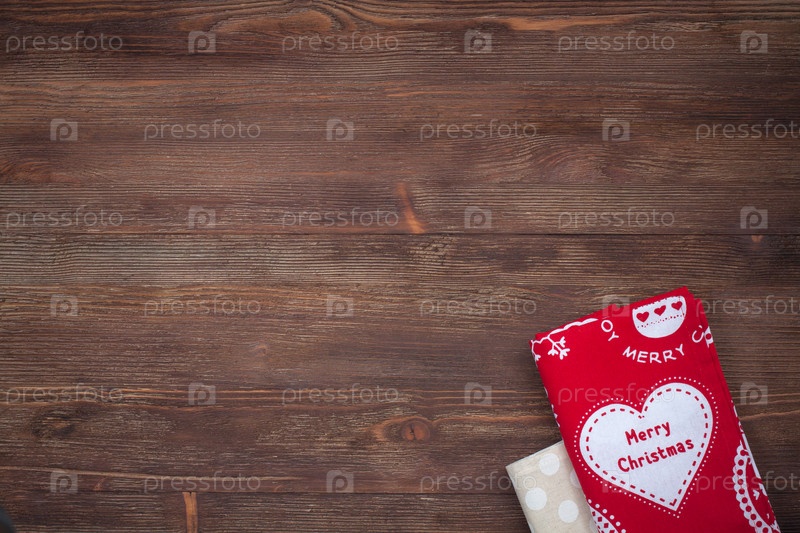 Кухонные рождественские полотенца на деревянном фоне
