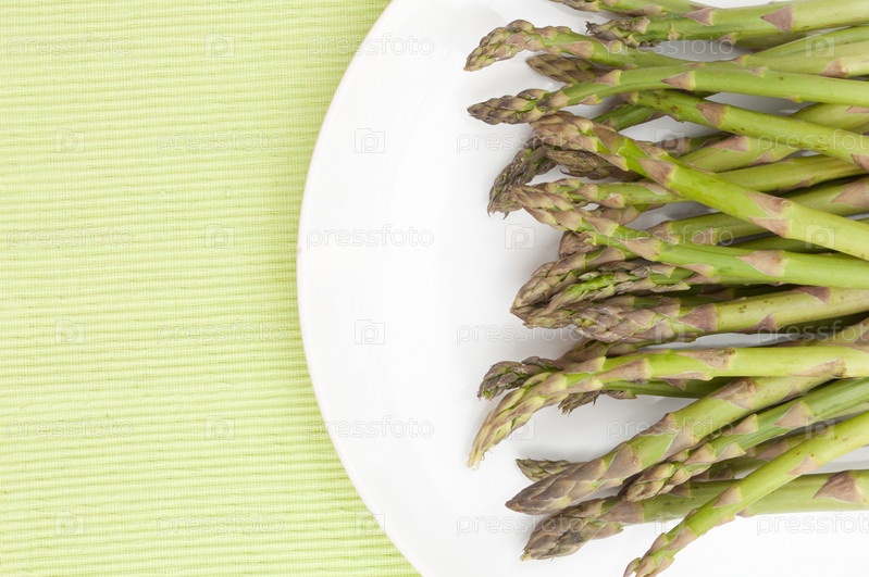 Палочки сырой спаржи на тарелке