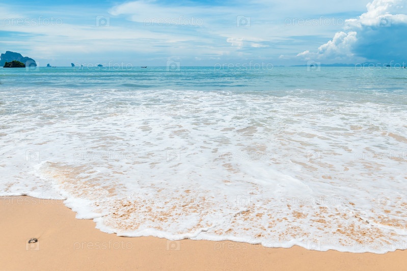 Красивая волна с белой пеной на пляжк, курорт Краби