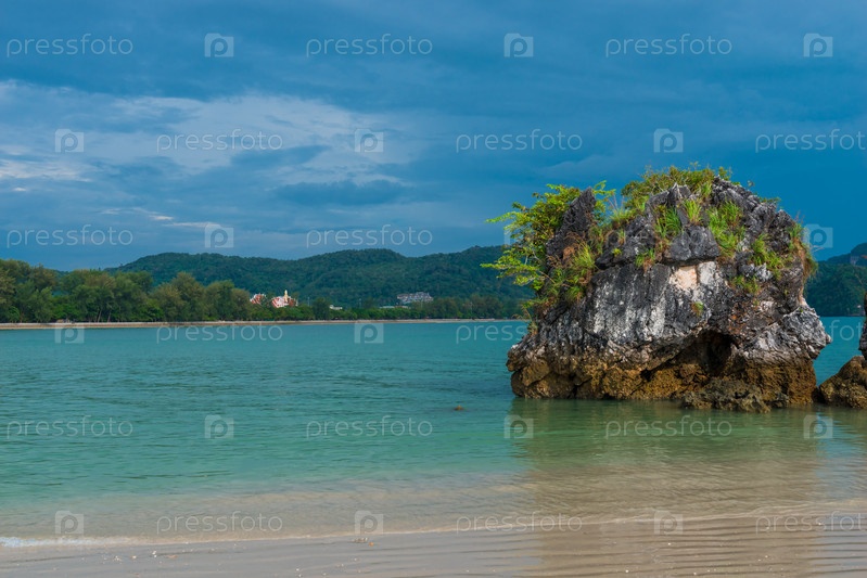 Мрачное голубое небо перед бурей на пляже Краби, Таиланд