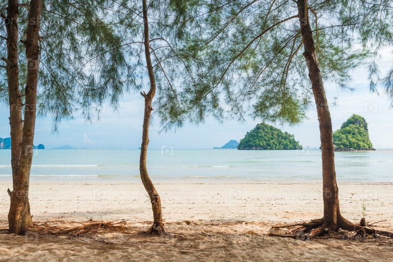 Пустой песчаный пляж с деревьями, Таиланд