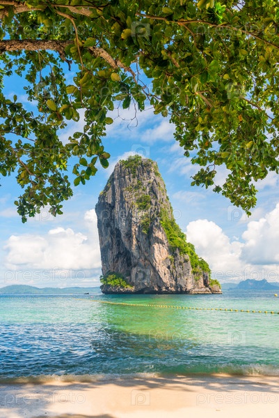 Пейзаж с красивой скалой и чистым морем, Таиланд